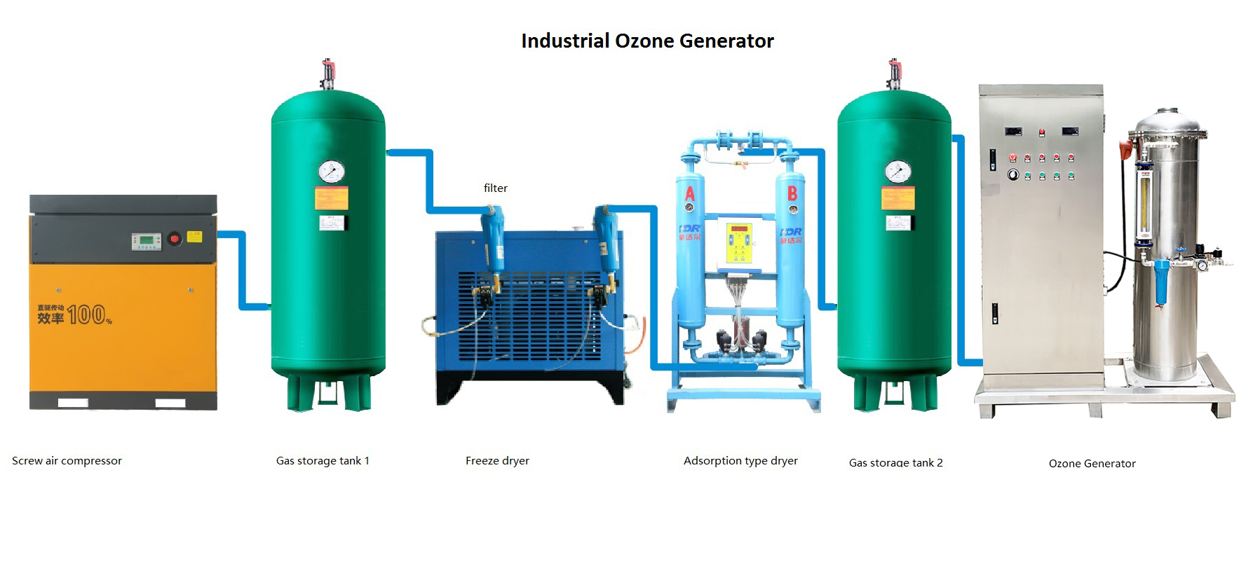 臭氧發(fā)生器使用氧氣源(臭氧發(fā)生器自帶制氧機(jī),利用環(huán)境空氣制成氧氣供臭氧發(fā)生器使用)。