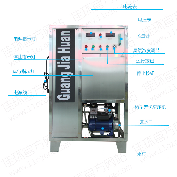 1、 水冷風(fēng)冷雙冷設(shè)計 水冷冷卻臭氧發(fā)生管 風(fēng)冷冷卻機器內(nèi)溫度冷卻水0.2-0.3T/H